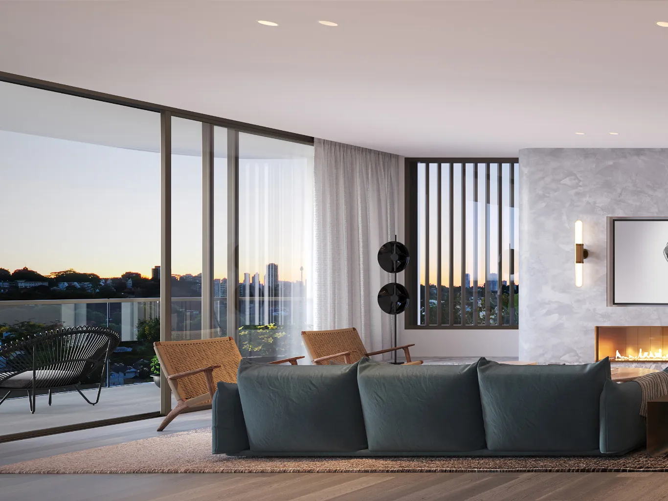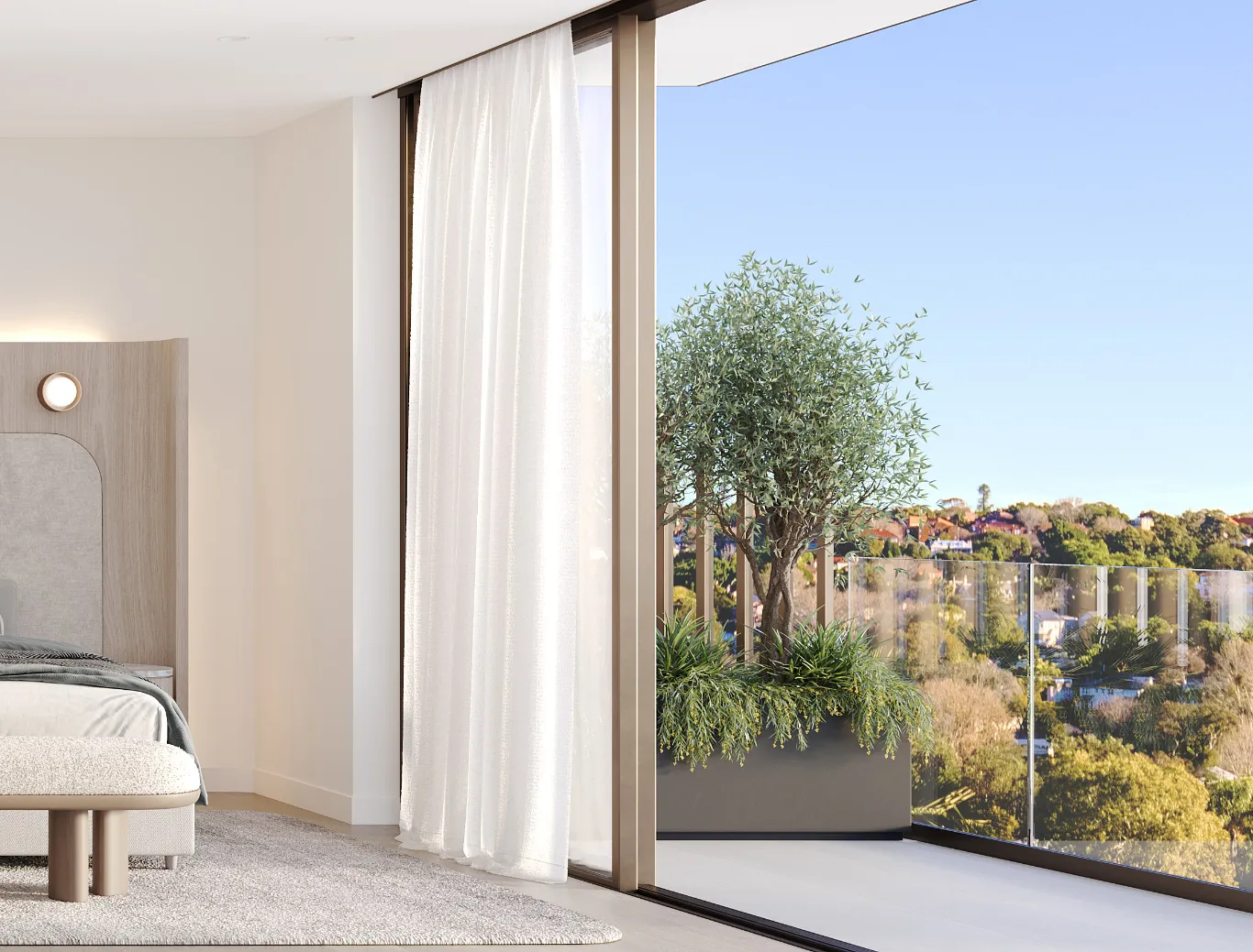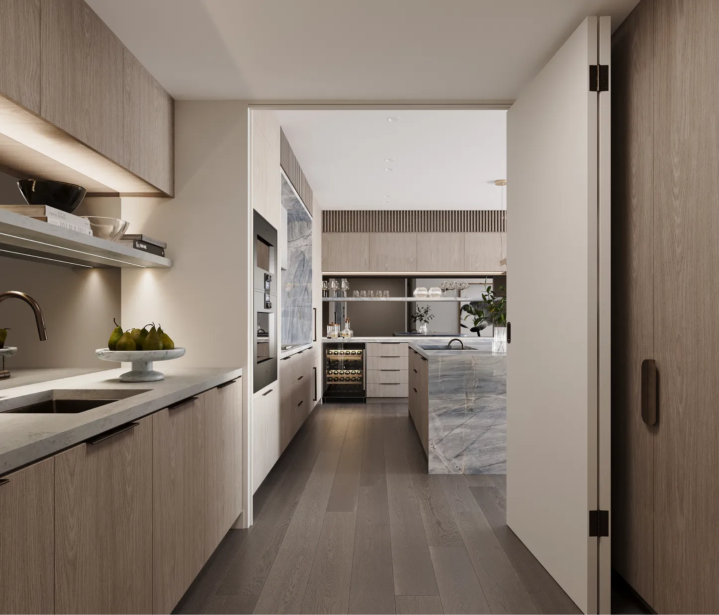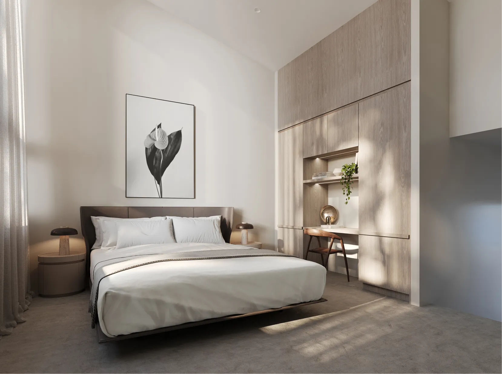 Arriving at the Canopy Penthouse, you’re drawn into the hallway with a focal point, an anticipation, for the expanse of open plan living that awaits. This generous space extends to the treetops with a large balcony terrace. House-like proportions and light filled spaces command attention from room to room. Finishes of outstanding quality with thoughtful details give the interiors of the Canopy Penthouse a quiet sophistication.